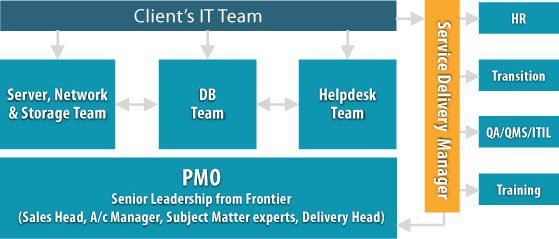 Frontier has a well-defined delivery processes and delivery organization. Service Support from the Project Management office is backed by a skilled team of program managers. Escalations map into the PMO and has a clear client engagement model. We follow ITIL compliant process across all our delivery models.